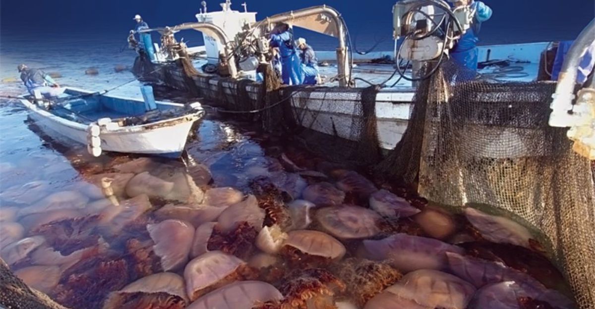 Because they compete with fish for food and feed on fish eggs and larvae, giant jellyfish blooms have the potential to seriously disturb marine ecosystems. Significant jellyfish blooms, such as those of Nomura’s jellyfish in Asian waters, have increased in frequency and size since the 1990s, having an effect on coastal economies and fisheries. By stinging swimmers, jellyfish can obstruct aquaculture pens, harm fishing equipment, and interfere with tourism.