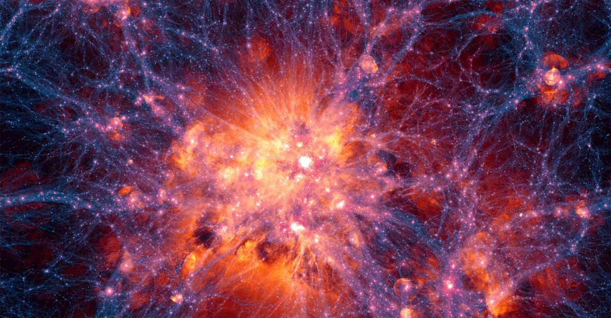Notably, approximately 27% of the mass of this filament consists of dark matter, an invisible component detectable only through its gravitational influence. The remainder consists of ordinary matter, such as stars, gas, and galaxies, accounting for just 5% of the universe’s total content. This remarkable filament exemplifies the hidden architecture of the cosmos, demonstrating that a significant portion of the universe remains elusive and can only be inferred through its effects on visible matter.